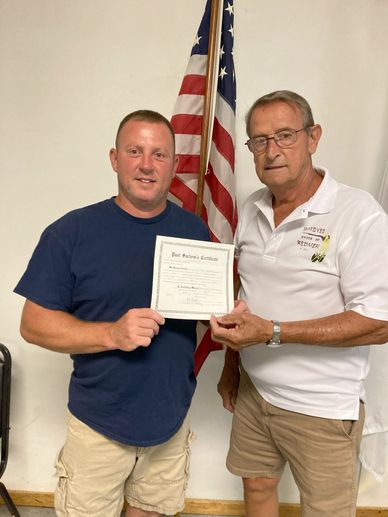 At the Oshawanee Tribe's August Meeting, P.G.I. Malcolm Greene presented Sachem Michael Froman with a Past Sachem's Certificate. Michael is a 40-year member of Oshawanee Tribe #220 of Brookville.